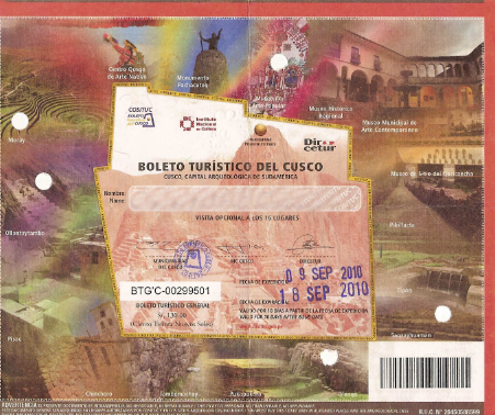 Chegando em Cusco, uma das primeiras providências a serem tomadas é comprar este boleto que será seu passaporte para 16 atrações localizadas na cidade e nos arredores.