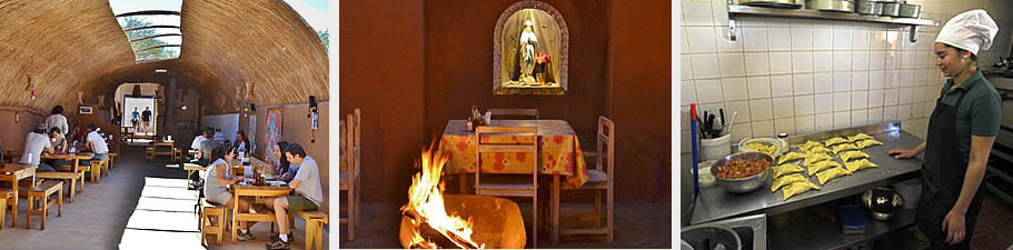 salão do Tierra Todo Natural, mesa do La Casona e cozinha do Las Delicias de Carmen/ Fotos: http://www.sanpedroatacama.com